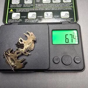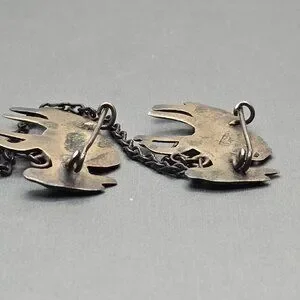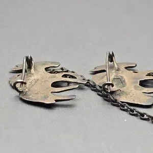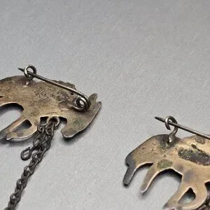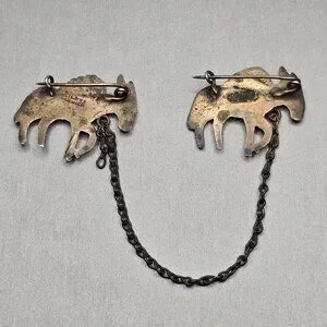 Partial vintage sterling brooch attributed to Los Castillo, consistent with the “Three Mule Team” design (#496). Features two skeletal-style donkeys linked by chain; originally three. Marked “Silver Mexico.” A charming Taxco figural piece with character, artistry, and collectible appeal.