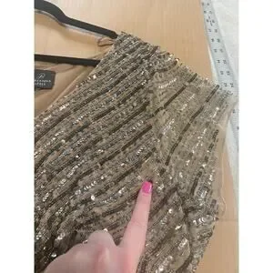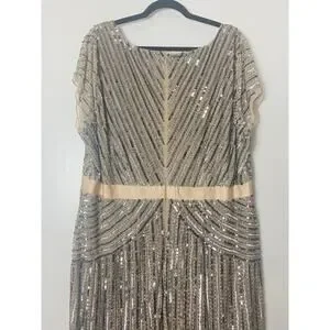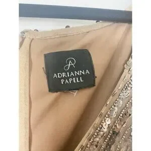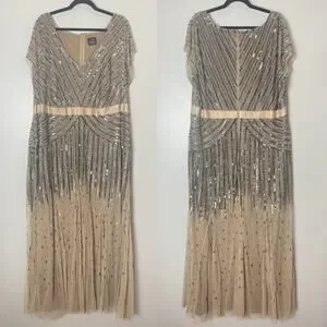 Adrianna Papell Beaded Sequin Gown Gold Nude Plus Size 20W Maxi Long Evening Formal Dress