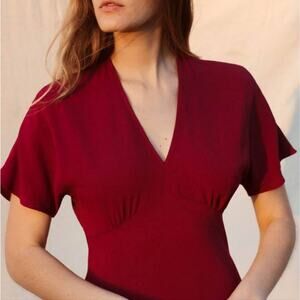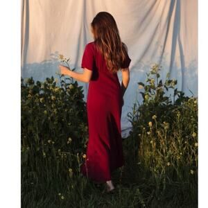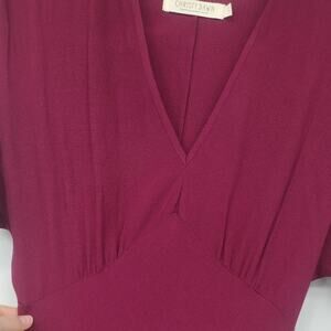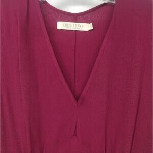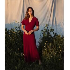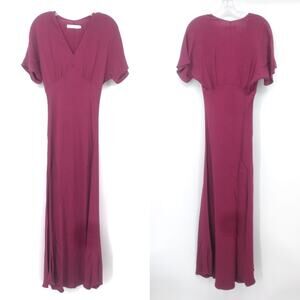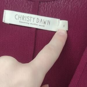 Christy Dawn Sequoia Dress in Boysenberry (maroon, magenta, burgundy) Size Small. Great used condition with minimal wear. Material: Deadstock fabric, feels like rayon. Features an empire waist, maxi dress length, v-neck, fluttered dolman sleeves. Rare dress that has been discontinued!