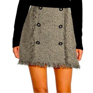 A Loves A Metallic Tweed Fringe High Rise Button Front Skirt NWT