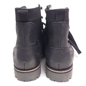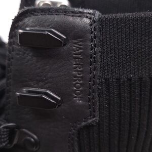 Stylish black ankle boots. Durable leather material. Lace-up design. Comfortable fit.