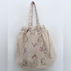 This elegant cream tote bag features beautiful floral embroidery, perfect for adding a touch of sophistication to any outfit. Ideal for everyday use.