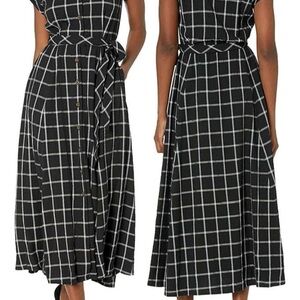NWT CALVIN KLEIN Gauze Windowpane Midi Shirtdress Belted Short Sleeve Size 10