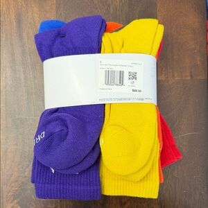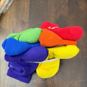 Dynamic Nike socks in red, green, blue, and orange. Perfect for sports and everyday use.