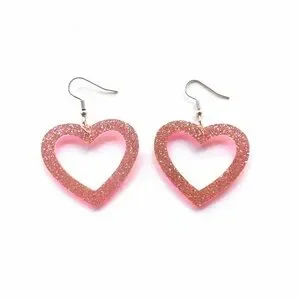 Perfect for Valentine’s Day! Pair of pink glitter or red glitter heart shaped earrings. Acrylic with silver fish hook backs.