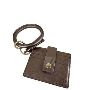 Chico's NWT Metallic Bronze Faux Leather ID Card Holder Wristlet. Has snap strap over card slots to hold them securely in place.