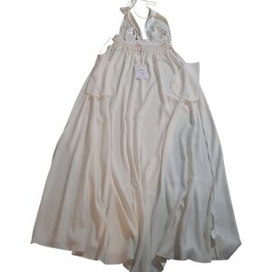 New Free People Dess Front Slit Halter Open back Silky Maxi Ivory Sz L