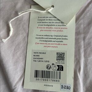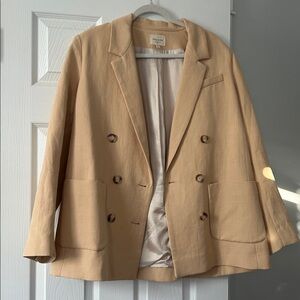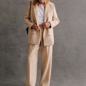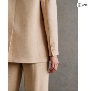 Sezane Double-breasted linen jacket-Size 42. Elevate your style with this elegant tan women's suit set. Perfect for professional and formal occasions. Bought in DC store-worn for try-on only. Tags are not attached.