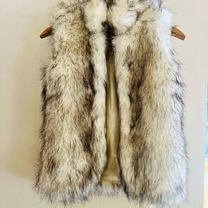 Chic faux fur vest by Wet Seal. Features cream and black tones. Ideal for stylish layering.