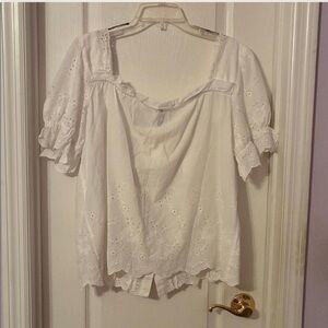 NWT Anthropologie Puff Sleeve White Eyelet Oversized Top/Blouse Sz L/XL