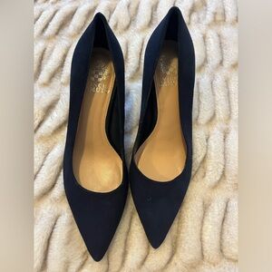 Vince Camuto Dark Navy Blue Suede Block Heel Pumps