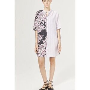 LANHTROPY LIGHTHOUSE LINEN SHIRT DRESS - LAVENDER SKY AND LILAC LOVE S/M