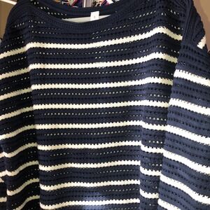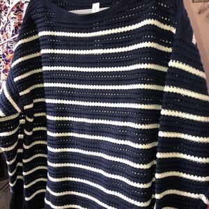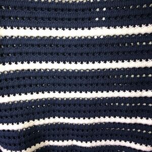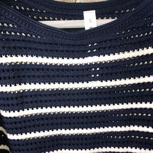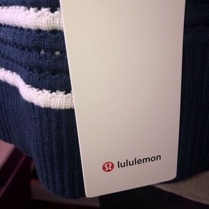 LULULEMON Cotton Crochet Mesh Pullover Sweater Navy Blue White Stripe XL NWT