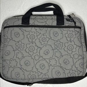 Stylish floral quilted laptop bag in gray. Features a convenient shoulder strap and handles.