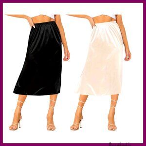 Satin Half Slip Set Elegant Minimal Chic Underskirt Dress Extender 2-Pack