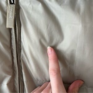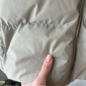 Beige puffer vest with a few imperfections . May come out with stain remover.