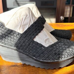Wt Mountain black Woven Strap wedge heeled shoes 8.5
