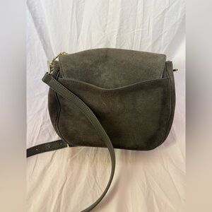 Talbots Suede Crossbody Bag Olive Green Gold Apple Turnlock Closure