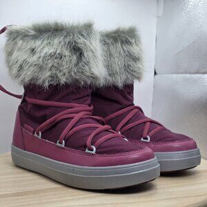 Womens Size 8 - Crocs Lodge Point Snow Boots Faux Fur Trim Pomegranate 203423