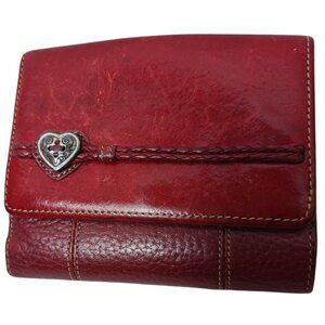 Brighton Red Leather Compact Wallet With Heart Detail & Card Slots Red