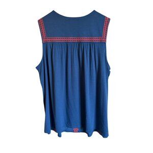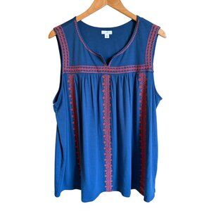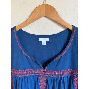J. Jill 2X Blue Orange Embroidered Peasant Top 3X Boho Bohemian Southwestern Western Made in India Cotton Modal