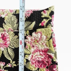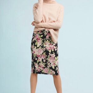 Maeve by Anthropologie floral jacquard pencil skirt in black with pink and green flowers.