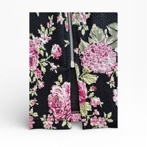 Color/Pattern: Black base with pink and green floral print.