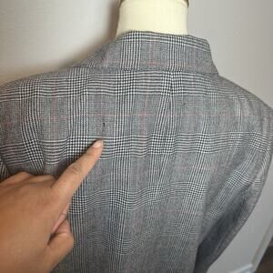 Vintage clothes have flavor to their history and are sold as-is.This piece has 2 very small holes on the blazer as noted in the listing and the belt loop has come undone a bit on one side.