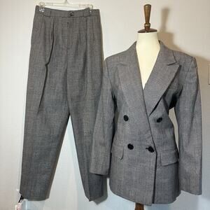 VTG Giorgio Houndstooth Plaid Wool Double Breasted Hi Waist Pants Suit Large 90s