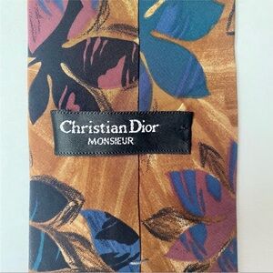 Vintage DIOR MONSIEUR Tan Abstracted Floral Classic Silk Tie