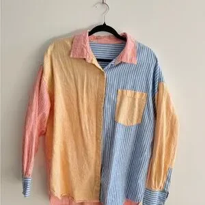 Stripe Multicolor Linen Button Down Shirt