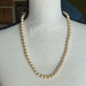 Marvella Faux Pearl Necklace Vintage 24" Gold Tone Floral Clasp