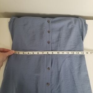 Gently used Lucky Brand Button Front Flutter Sleeve Dress in a size Large. Color is light blue.