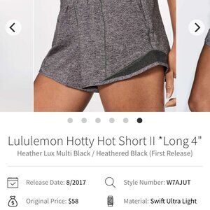Lululemon Hotty Hot Short 2.5' Heather Lux Multi Black,Heathered Black SZ 6Tall