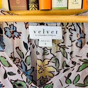 Velvet Graham Spencer Sheer Floral Drawstring Waist Slip Lng Sleeve Midi Dress S