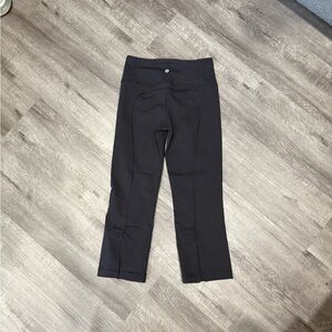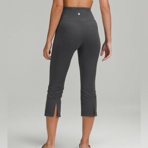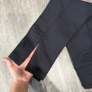 Stylish blackcropped leggings with slit details. Perfect for casual wear or workouts.