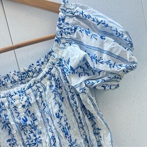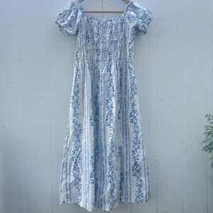 Elegant blue floral print dress with a classic design. Perfect for any occasion.