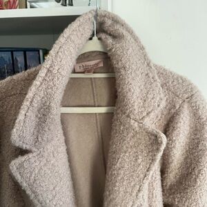 Stay cozy and stylish with this women's cream/light pink teddy coat. Perfect for chilly days, this coat offers warmth and a chic look. It has one button and pockets.