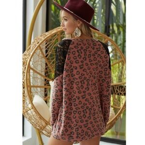 "The Ingrid" Leopard Print Brushed Knit with Lace Shoulders