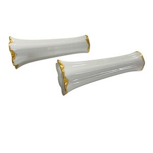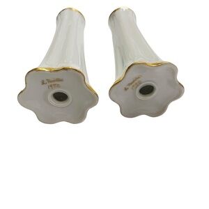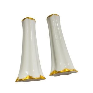 A Set Tall White Porcelain Hutschenreuther Salt & Pepper Shakers / Gold Trim Germany / For L. Neirlle 1970