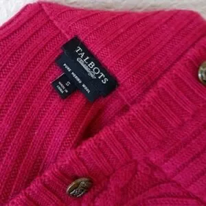 Talbots fuchsia 100% wool ribbed military style cardigan sweater. Great condition.