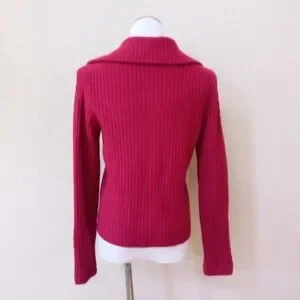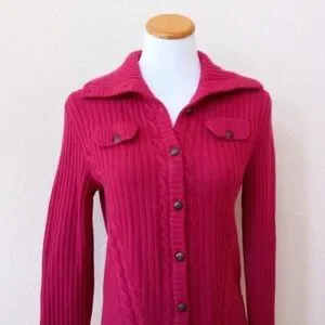 Talbots fuchsia 100% wool ribbed military style cardigan sweater
