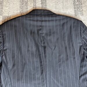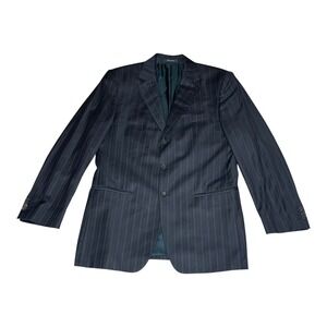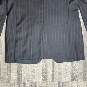 Keywords: pinstripe, wool, suit jacket, business casual, professional, tailored fit, notched lapel, three button, formal wear, smart casual, workwear, classic, menswear