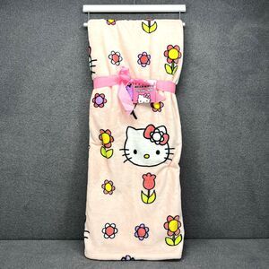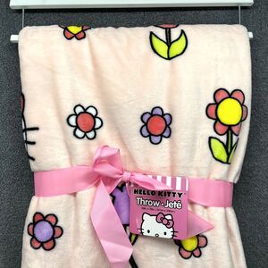 Hello Kitty Blanket Spring Easter Flowers Pink Plush Throw 50" X 70" Sanrio