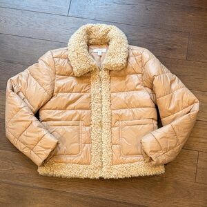 Ann Taylor Weekend Tan Puffer Jacket with Faux Shearling Trim Size XS