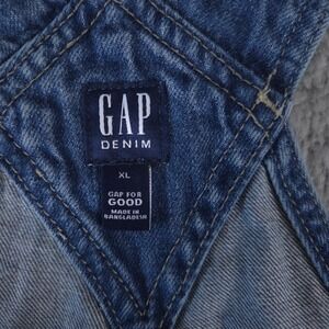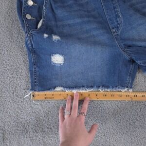 Gap Overalls Women XL Baggy Bib Denim 4" Shortall Cut Off Distressed Medium Wash
