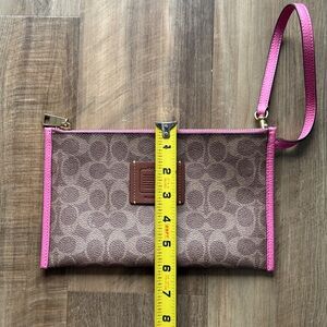 Coach Signature Canvas Wristlet Pouch Brown & Pink Leather Trim