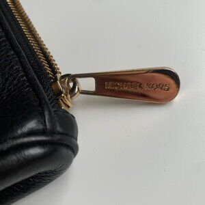 Michael Kors Black Pebbled Leather Wristlet Clutch Bag – Gold Plate Logo, Zip