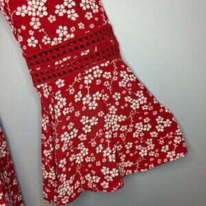 Hollister Boho Hippie Festival Bell Sleeve Romantic Red Floral Romper Women Sz M