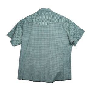 The Wrangler Western Shirts Pearl Snap Shirt in size 3XT is a stylish and comfortable option for men looking for a casual snap-down shirt. Made from a blend of polyester and cotton, this short sleeve shirt features a blue and black plaid pattern with pearl snaps for a unique accent. The collared neckline, point collar style, and western theme make it a versatile piece for everyday wear, while the machine washable fabric ensures easy care. Additionally, the regular fit and inclusion of pockets add practicality to this classic snap-up shirt.